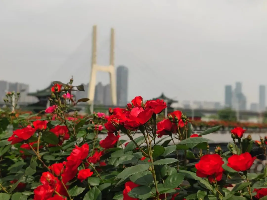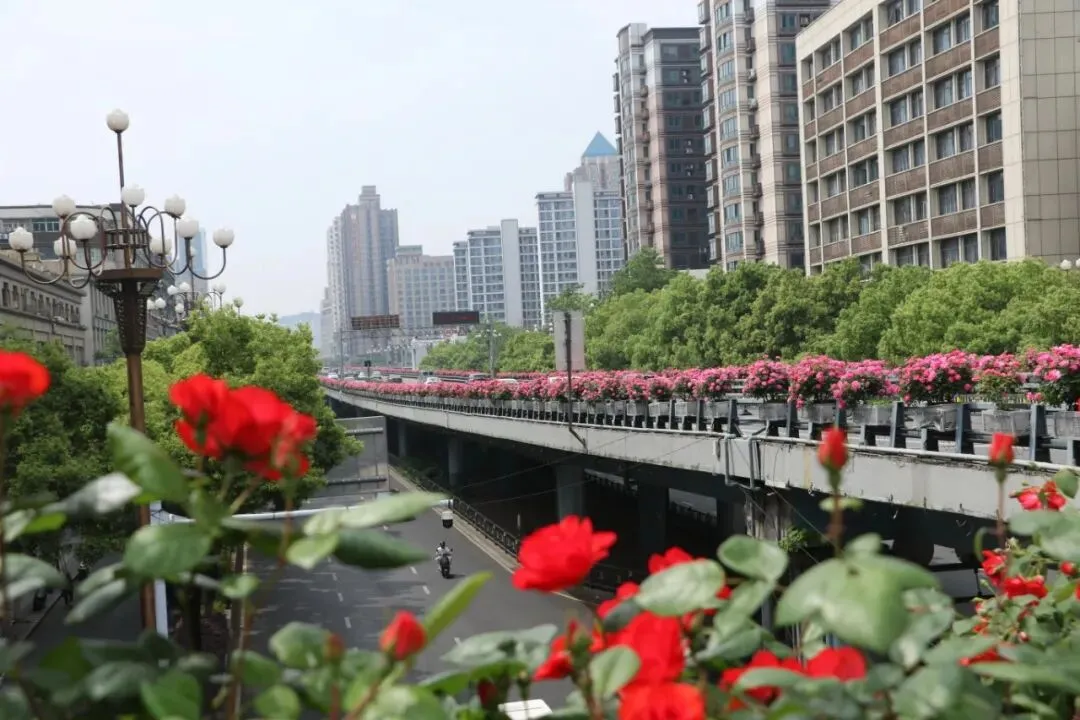 不同于牡丹的华贵、荷花的清雅,月季以其坚韧持久的花期、绚烂多姿的花色,默默装点着南昌的街巷,陪伴着市民的朝夕,恰如这座城市的品格,温润而有力量,平凡而不平庸。古往今来,文人墨客从未吝啬对它的赞美,苏轼笔下“唯有此花开不厌,一年长占四时春”的咏叹,让这株“花中皇后”,在岁月流转中,承载了太多关于美好与坚守的期许。如今,22000株月季将城市高架化作绚烂花廊,为英雄城的暮春,添上了浓墨重彩的一笔。