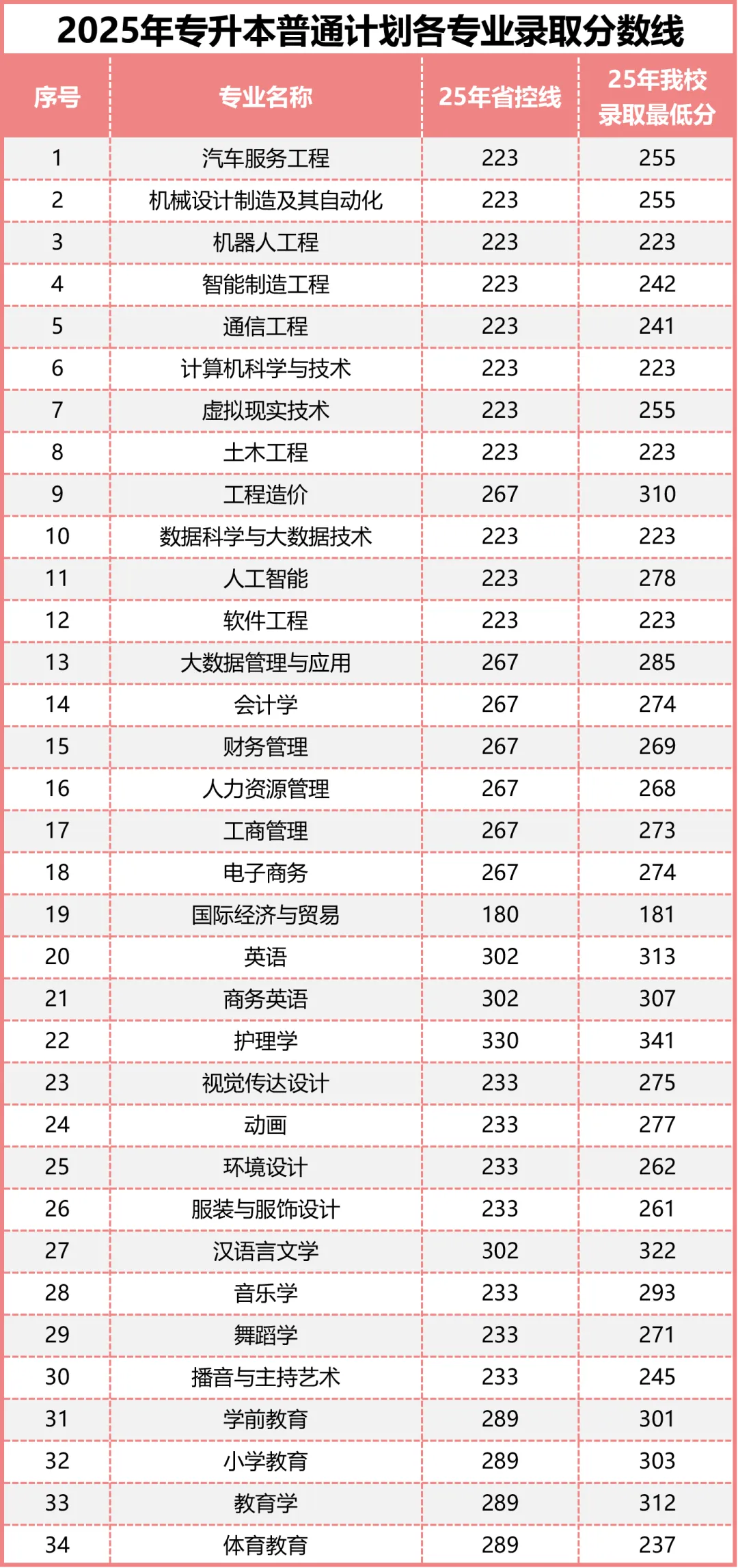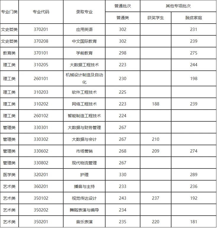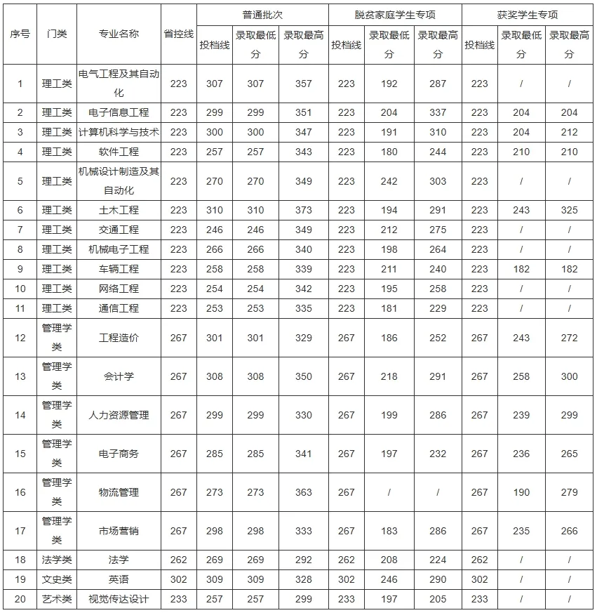 最低录取分数线