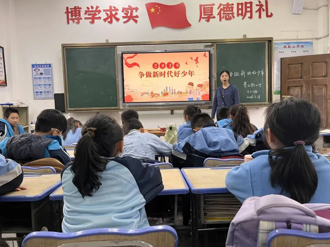墨山街小学开展了以“争做新时代好少年”为主题的主题班会,通过学习讨论、榜样分享等形式,引导同学们认识新时代少年的使命与担当。同学们纷纷表示,要从现在做起,努力学习、传承美德,不负韶华,不负时代。