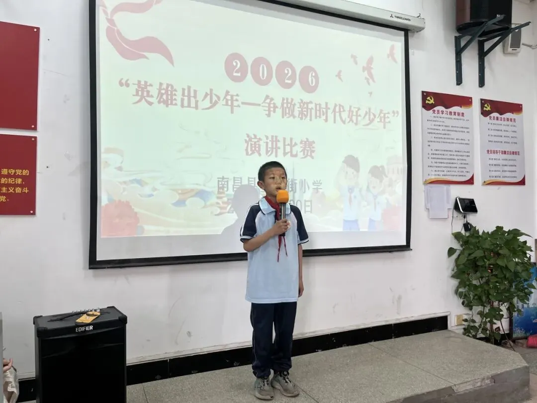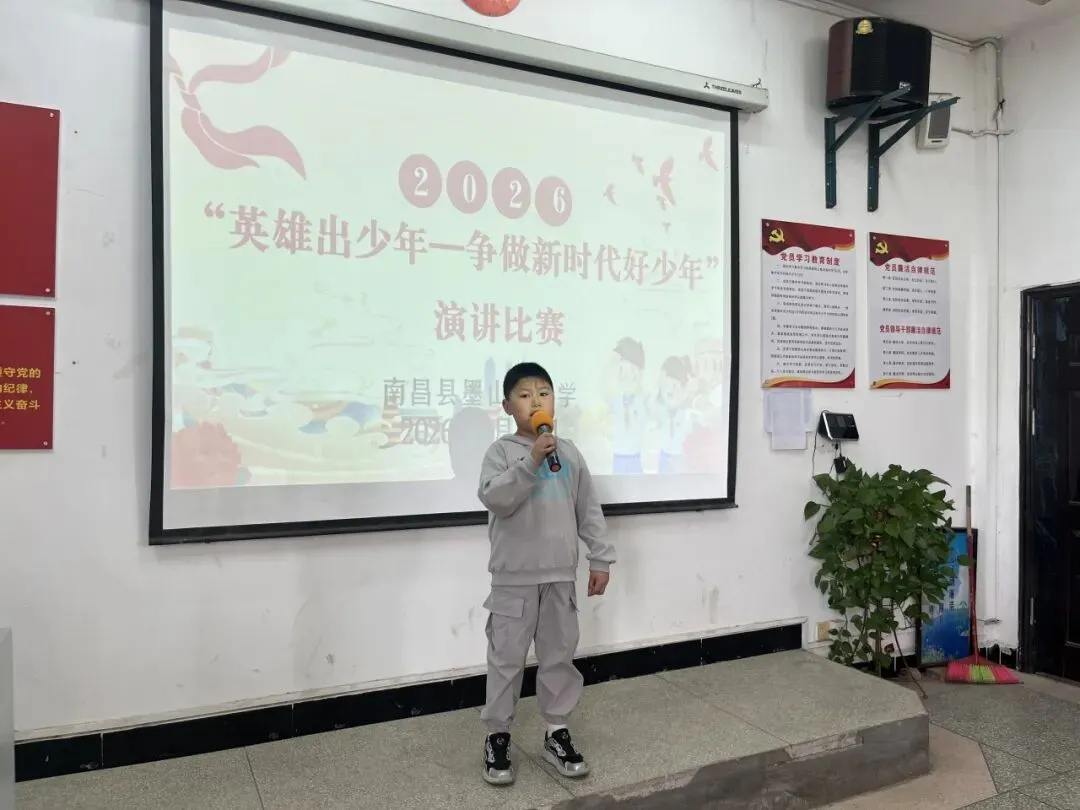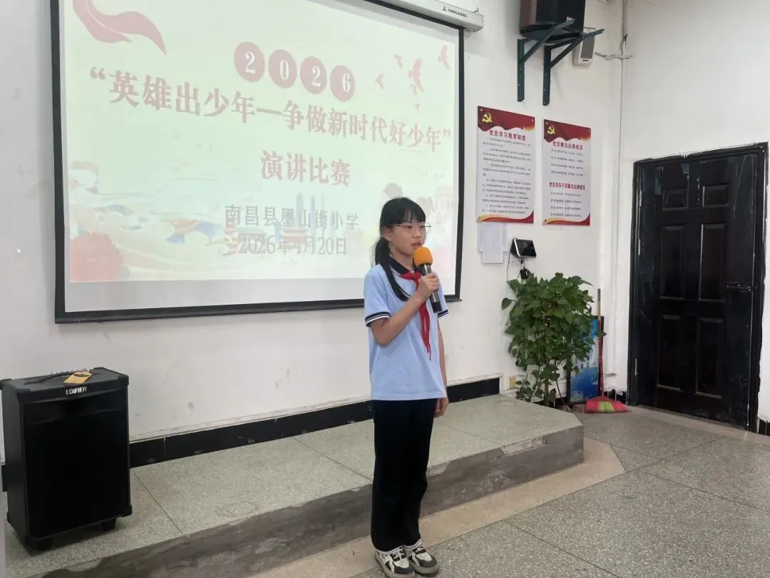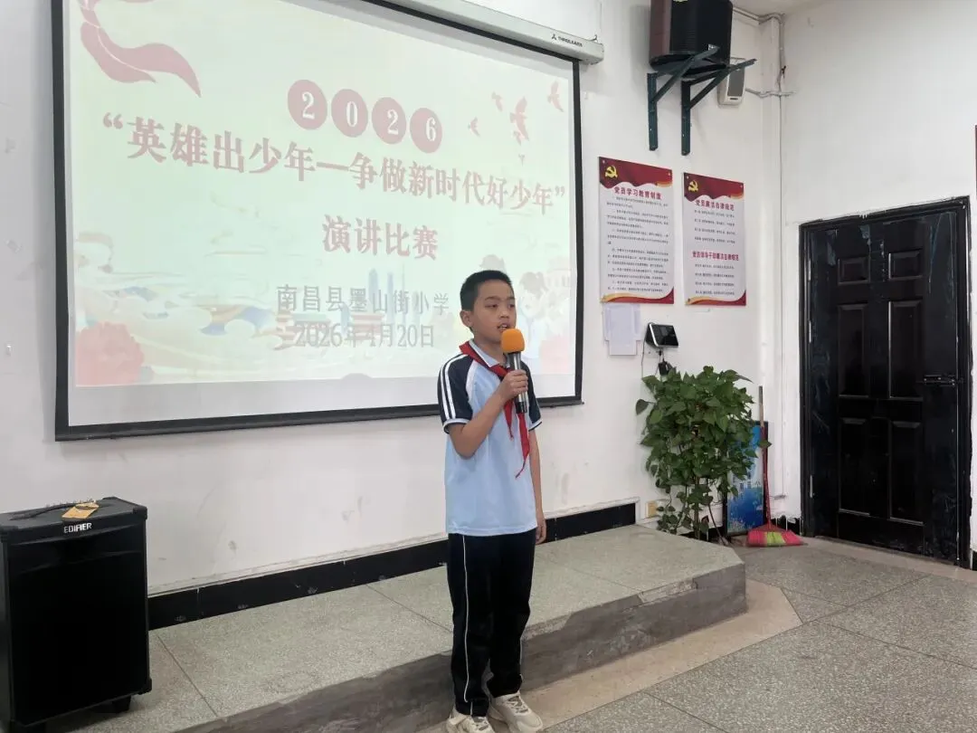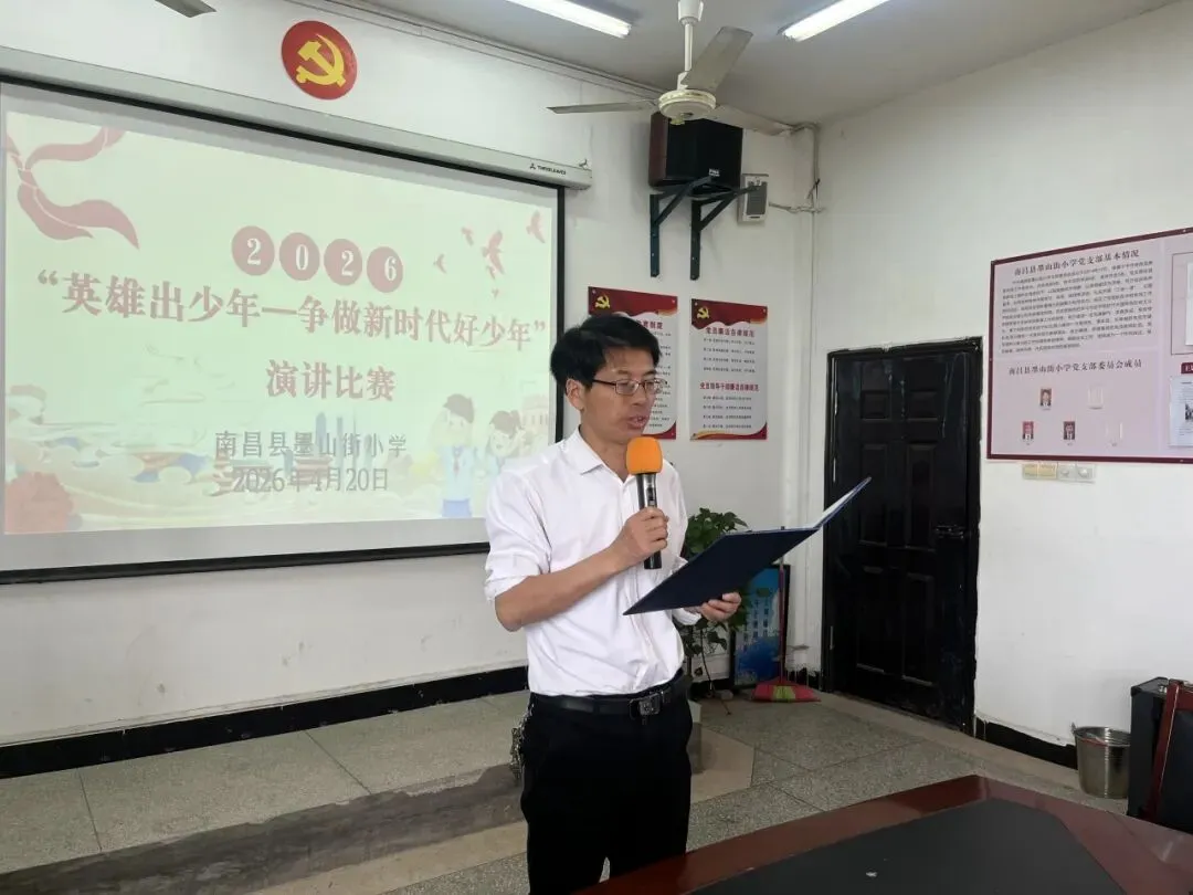 活动伊始,南昌县墨山街小学党支部书记、校长陶小平为本次“英雄出少年——争做新时代好少年”演讲比赛致辞。他鼓励全体墨小学子以英雄为榜样,传承红色基因,厚植家国情怀,在学习中磨砺本领,在成长中勇担使命,努力成长为向上向善的新时代好少年,让青春在追梦路上绽放光彩。