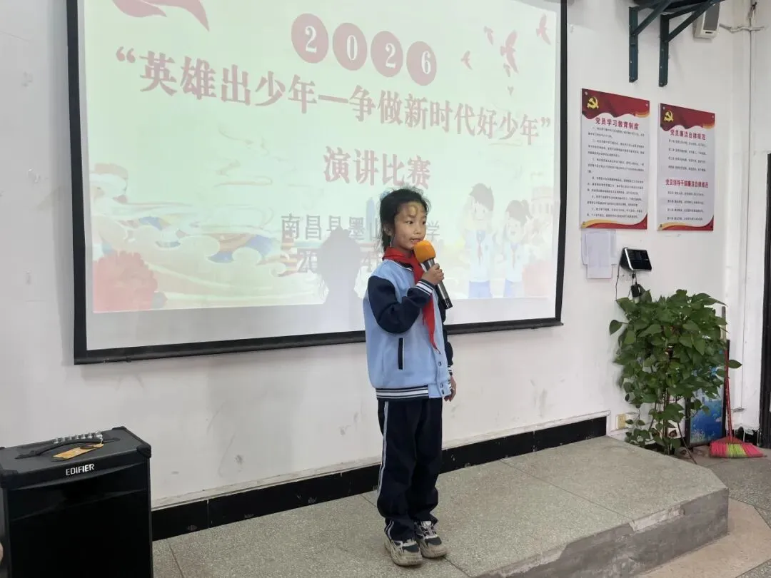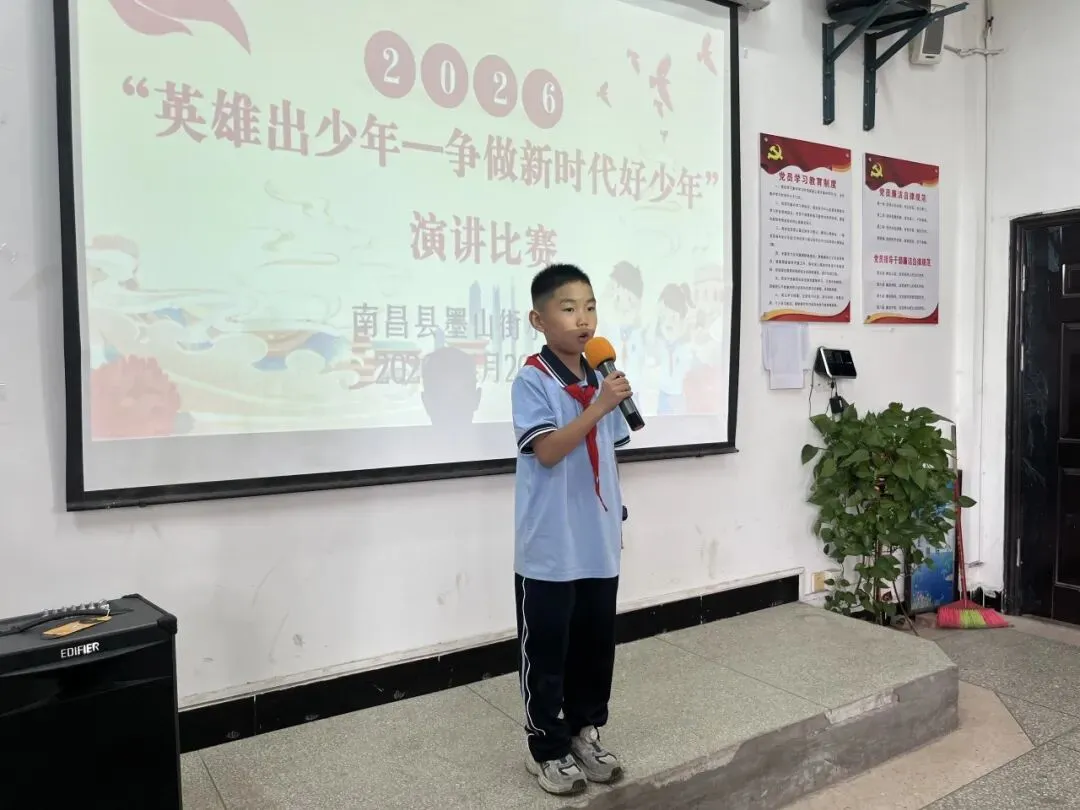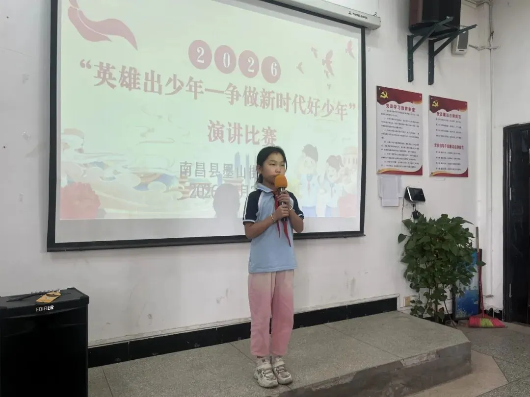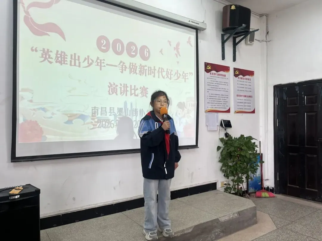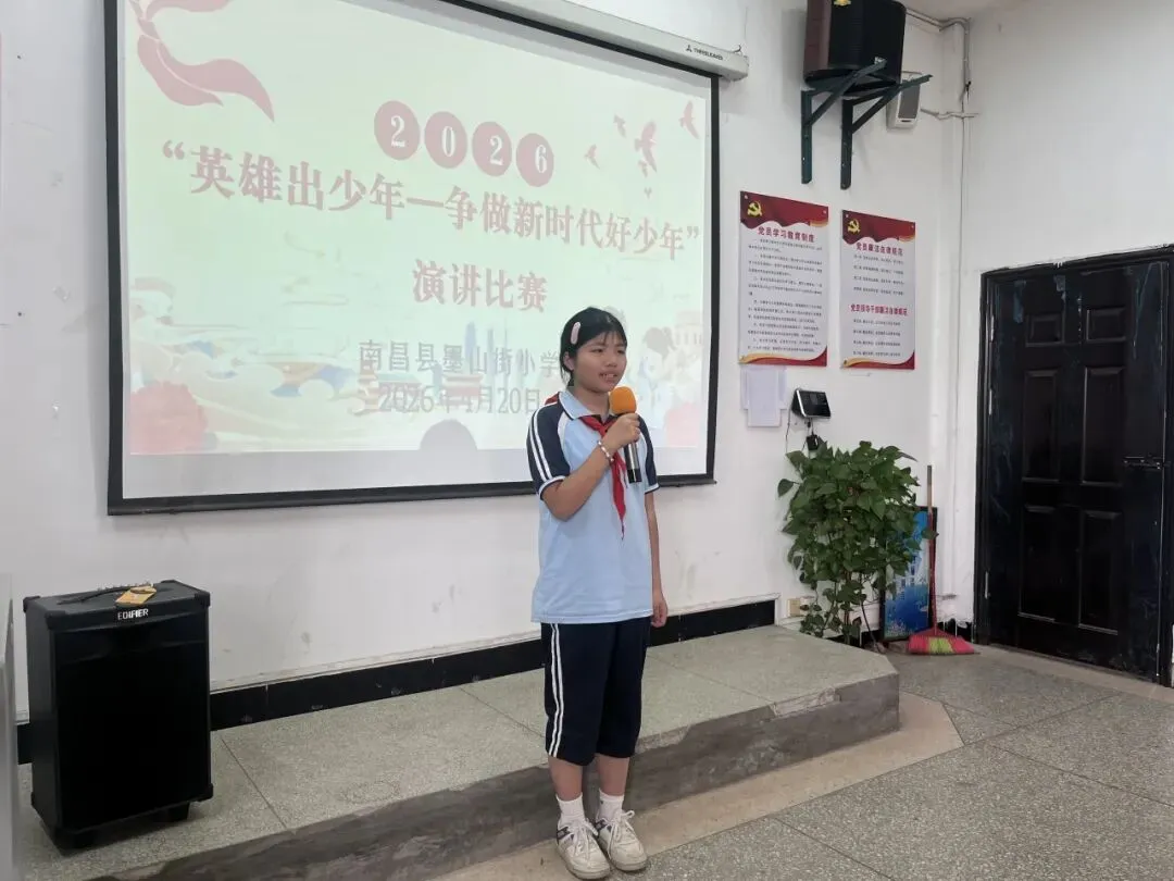 演讲台上,同学们自信昂扬,以饱满的热情讲述英雄故事、抒发少年心声。他们用真挚的语言传递敬意,用稚嫩却坚定的声音许下承诺,将对英雄的崇敬、对时代的担当,化作一段段感人至深的讲述,展现出墨山街小学学子昂扬向上的精神风貌。