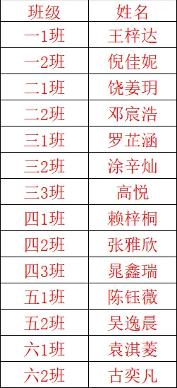 经过一番激烈的评选,最终以下14位同学荣获校级“新时代好少年”荣誉称号。
