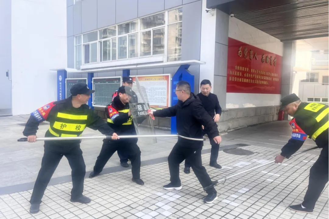 实操环节中,教官现场示范防护、制敌技巧,手把手指导器械操作。保安队伍凭借值守经验快速上手,青年教师认真练习、夯实基础,两支队伍互补互助,凝聚校园应急核心力量。
