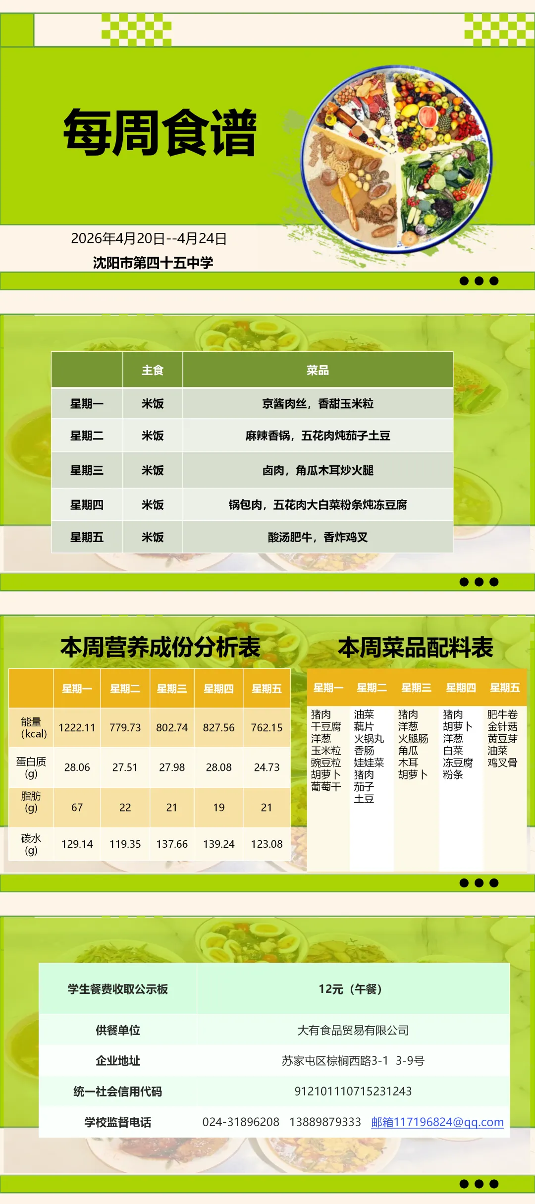 【南昌 满融】沈阳市第四十五中学2026年4月20日-4月24日食谱