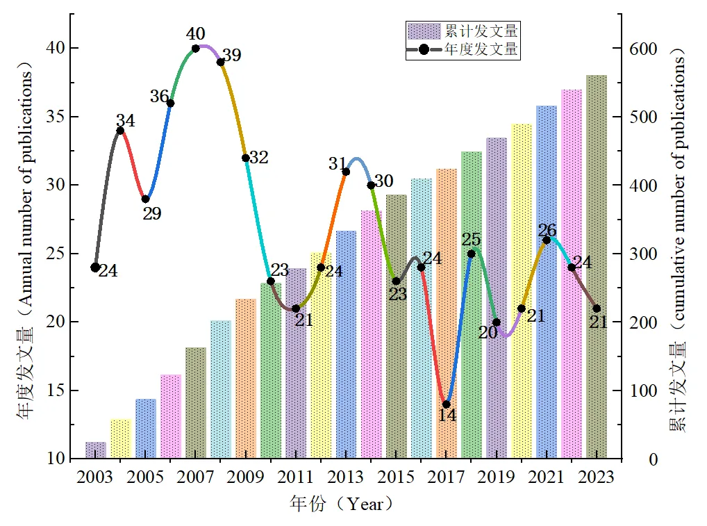 Fig.1 Annual publication trend chart of Cu-Cr alloy in the past 20 years