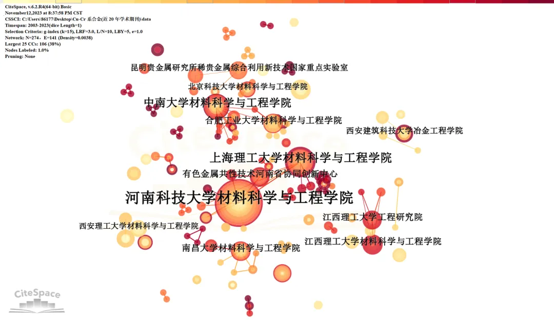 Fig.3 Knowledge graph of institutional collaboration networks in Cu-Cr alloy research