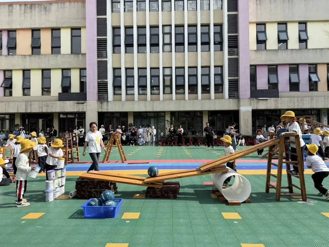 南昌县第三幼教集团总园巩玉伟老师带来户外自主游戏《滚动乐园》,活动中,教师投放实木平衡梯、户外平衡木、篮球、收纳筐等原生态低结构器械,让幼儿自由组合搭建多元滚动游戏区,自主操控球体滚动闯关,材料可灵活调整,自主创设玩法。使幼儿在户外自主游戏中锻炼平衡协调、勇敢探究与合作能力,以游戏赋能幼儿身心发展,落实科学幼小衔接。