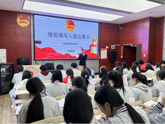 南昌市朝阳中学开展“规范填写入团志愿书”专题团课培训 4月14日下午三四节课,南昌市朝阳中学在团校教室举办“规范填写入团志愿书”专题团课培训,助力入团积极分子规范入团流程,强化组织观念。培训由学校团委干事周竹萱老师主讲。