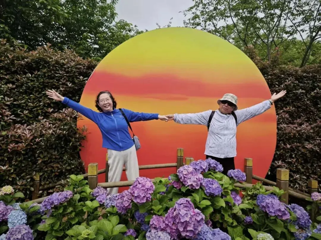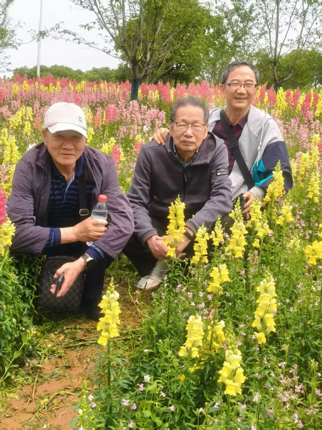 漫步园中,成片的金鱼草花开正艳,红的似火、黄的如金、粉的似霞,层层叠叠,随风摇曳,宛如一群群灵动的小金鱼在绿波中畅游,引得老同志们纷纷驻足观赏、拍照留念。而在林荫深处,绣球花也已悄然绽放,一团团、一簇簇,圆润饱满的花球挂满枝头,象征着团圆与美满,恰如老同志们此刻相聚的温馨时光。