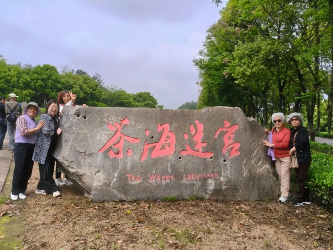 上午的行程以赏花观景为主。随后,老同志们游览了规模宏大的茶海,两千余亩茶树依山势起伏,如绿色的波浪层层铺展,被誉为“大地艺术”。老同志们在茶海中穿行,呼吸着清新的茶香,感受着自然的韵律。