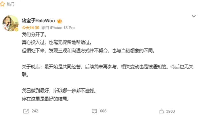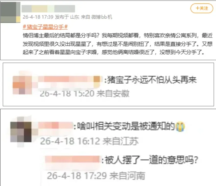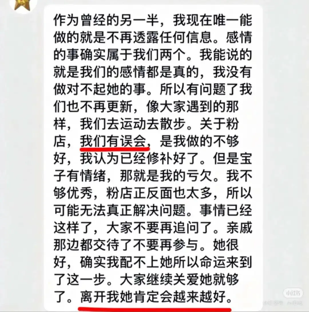 当然,猪宝子说的“与星星三观不合、沟通无果”应该是最核心的原因,外部原因可能很重要,但如果内部的二人都无法站在统一阵线上,势必会分崩瓦解