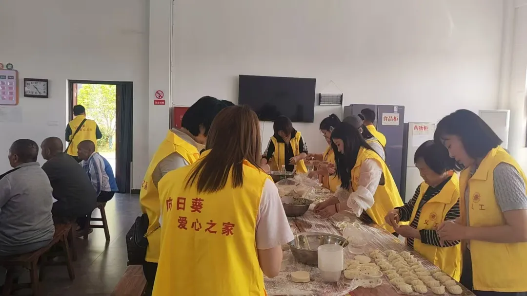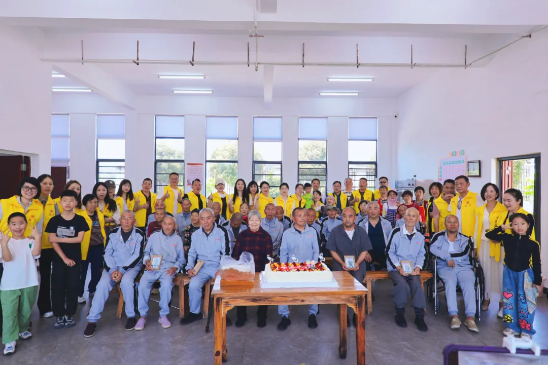 活动现场,志愿者们身着醒目的黄色志愿马甲,各司其职、热情满满。厨房内,大家分工协作、洗菜备料,忙得热火朝天;活动室内,志愿者们围坐桌前,和面、拌馅、包饺子,动作麻利又熟练,不一会儿,一个个饱满的饺子就摆满了案板,也装满了对老人们的浓浓心意。除了准备暖心餐食,志愿者们还为敬老院的老人们带来了特别的惊喜。他们为每位老人拍摄照片并精心制作成相框,定格下老人们慈祥的笑容与幸福瞬间,这份小小的礼物,让老人们脸上都露出了开心的笑容。活动中,志愿者们还准备了生日蛋糕,为老人们举办了一场温馨的集体生日会,大家齐唱生日歌,共同分享甜蜜,现场暖意融融,充满了欢声笑语。