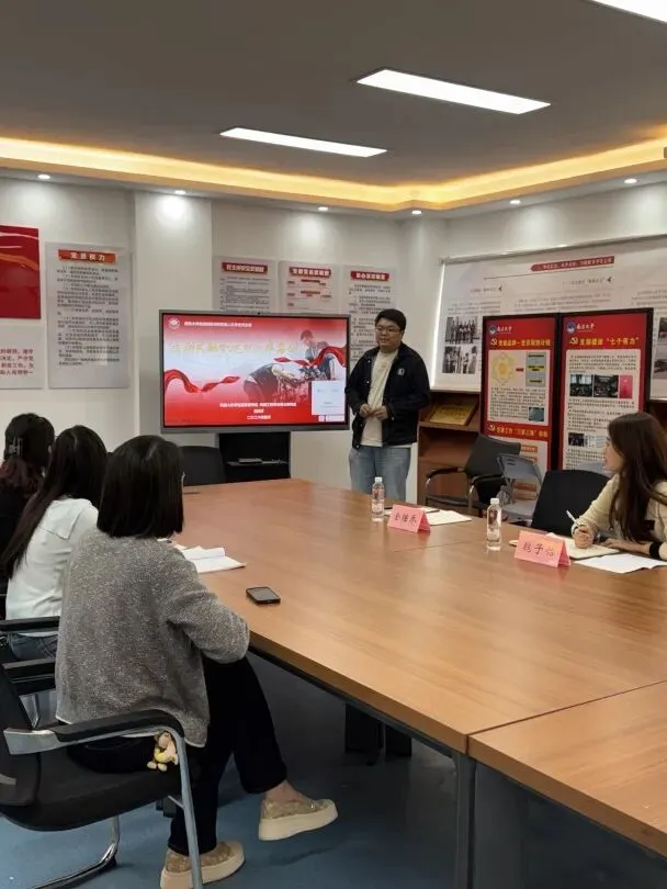 活动中,先进制造学院机器人队学生党支部书记金陆乔,详细介绍了支部的核心工作举措与特色党建品牌。他讲到,支部始终坚持党建与育人深度融合,将思政工作贯穿人才培养全链条,组织本硕博学生党员深耕科技创新、学科竞赛、创新创业等核心领域,切实实现党建工作与业务工作双融合、基层战斗堡垒作用与党员先锋模范作用双提升。