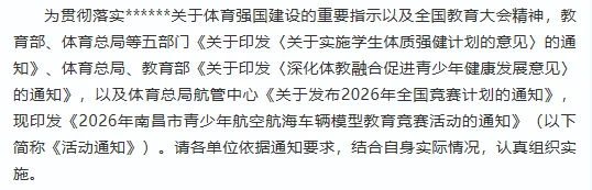 关于开展2026年南昌市青少年航空航海车辆模型教育竞赛活动的通知