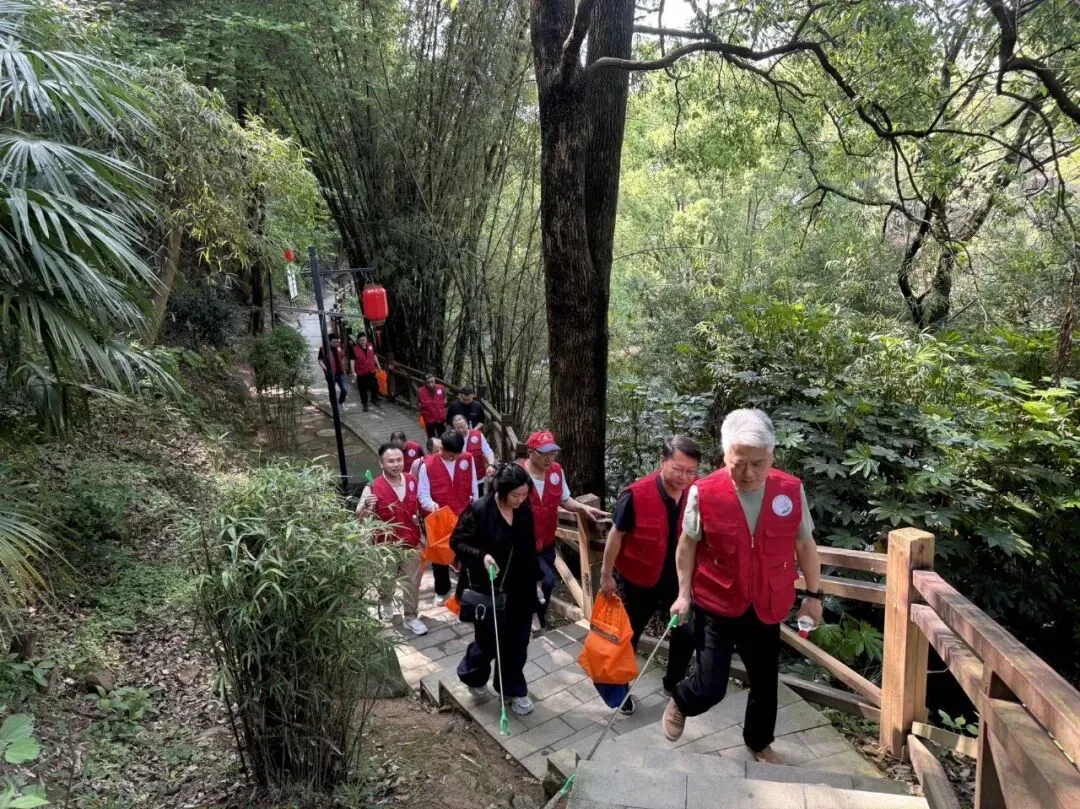 春游之余,商会组织全体成员开展了公益环保行动。大家手持工具,在梅岭景区内认真清理步道及周边的垃圾杂物,以实际行动守护绿水青山。