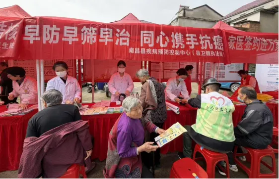 2026年4月15日—21日是第32个全国肿瘤防治宣传周,主题为“早防早筛早治 同心携手抗癌”。4月17日上午,南昌县疾控中心(县卫健执法局)联合县人民医院、县第二人民医院、银三角街道卫生服务中心、蒋巷镇中心卫生院等单位,在银三角贵都国际花园小区和蒋巷镇居委会同时举办宣传活动。