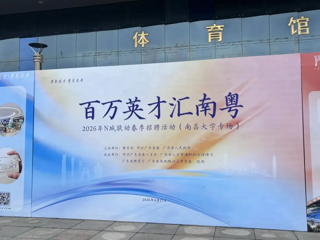 为扎实推进2026届毕业生高质量就业工作,抢抓春季招聘黄金期,4月17日上午9:30,在学校就业处统筹安排下,商学院组织26届毕业生前往南昌大学参加"百万英才汇南粤"2026年N城联动春季招聘(江西站)专场活动。学院毕业班班主任谌文丽老师带队前往,积极引导学子对接优质岗位,拓宽就业渠道,并为未能到现场及未在校的同学提供简历代投服务,实现就业服务全覆盖。