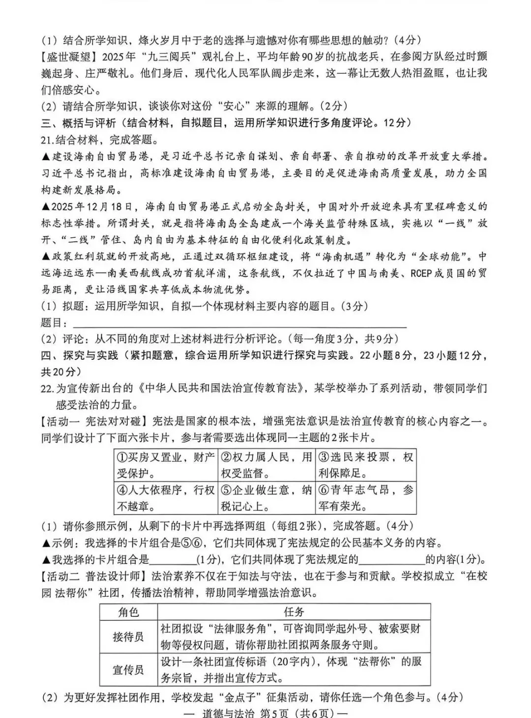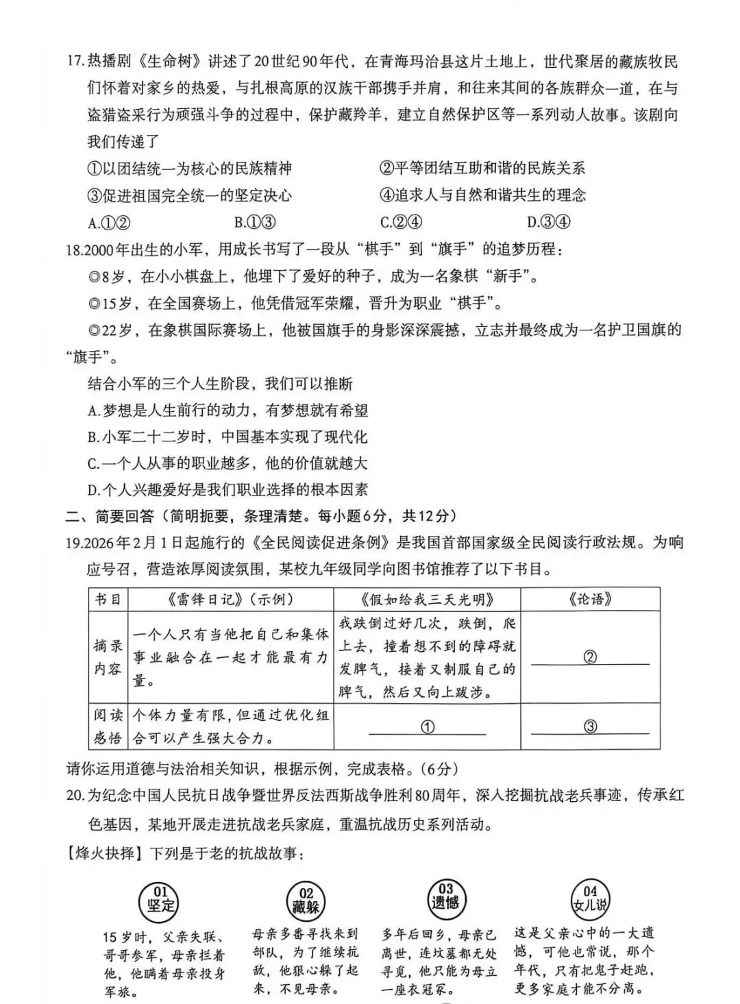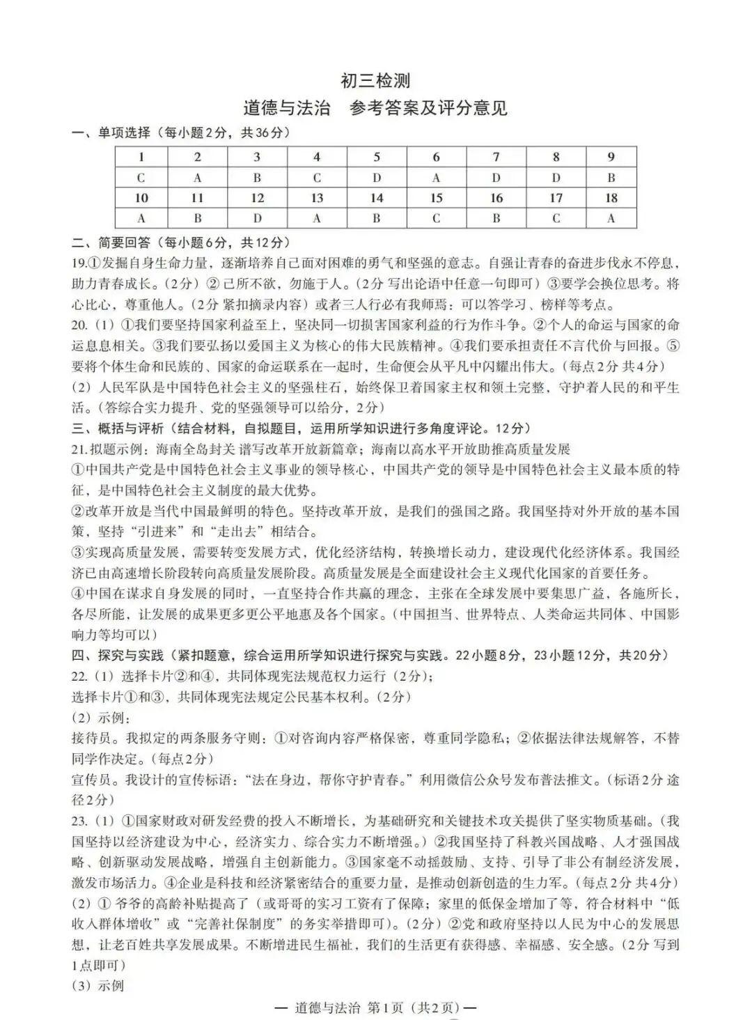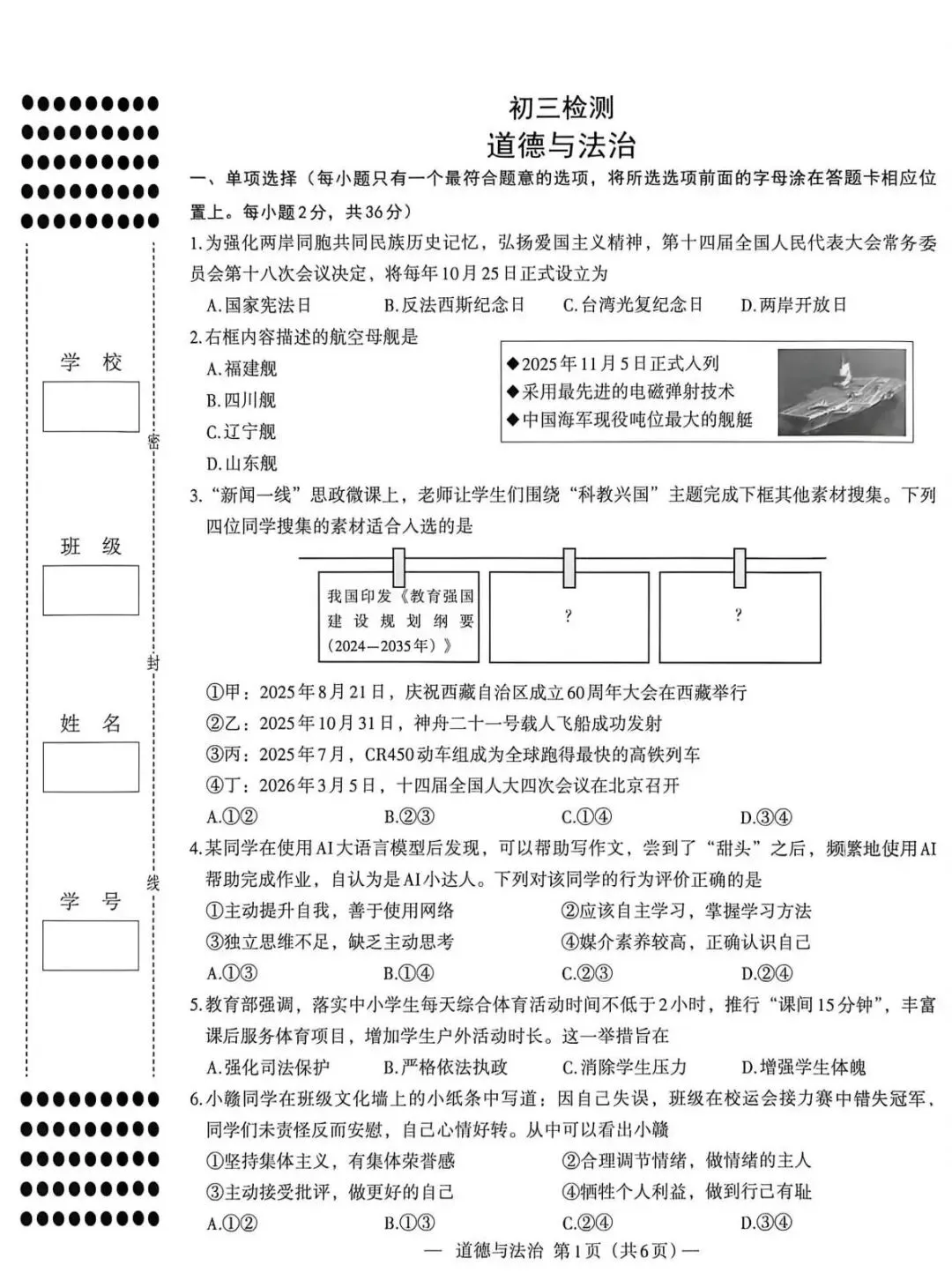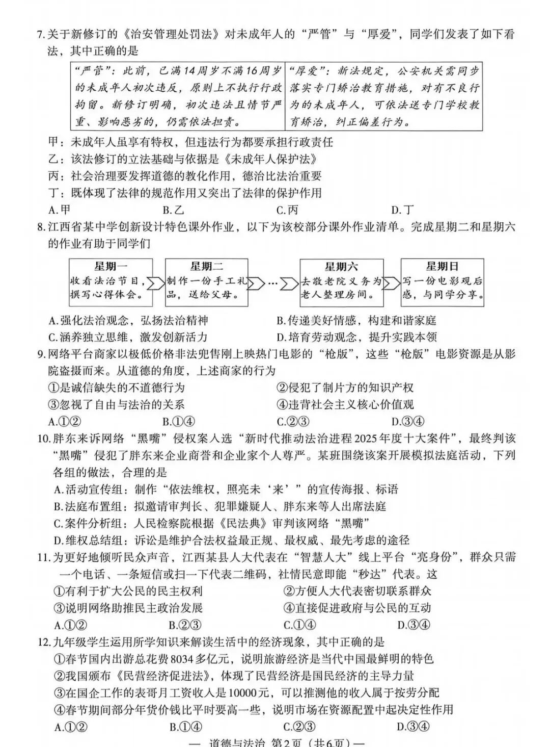 >2025至2026年南昌市第一次中考模拟测试卷及答案