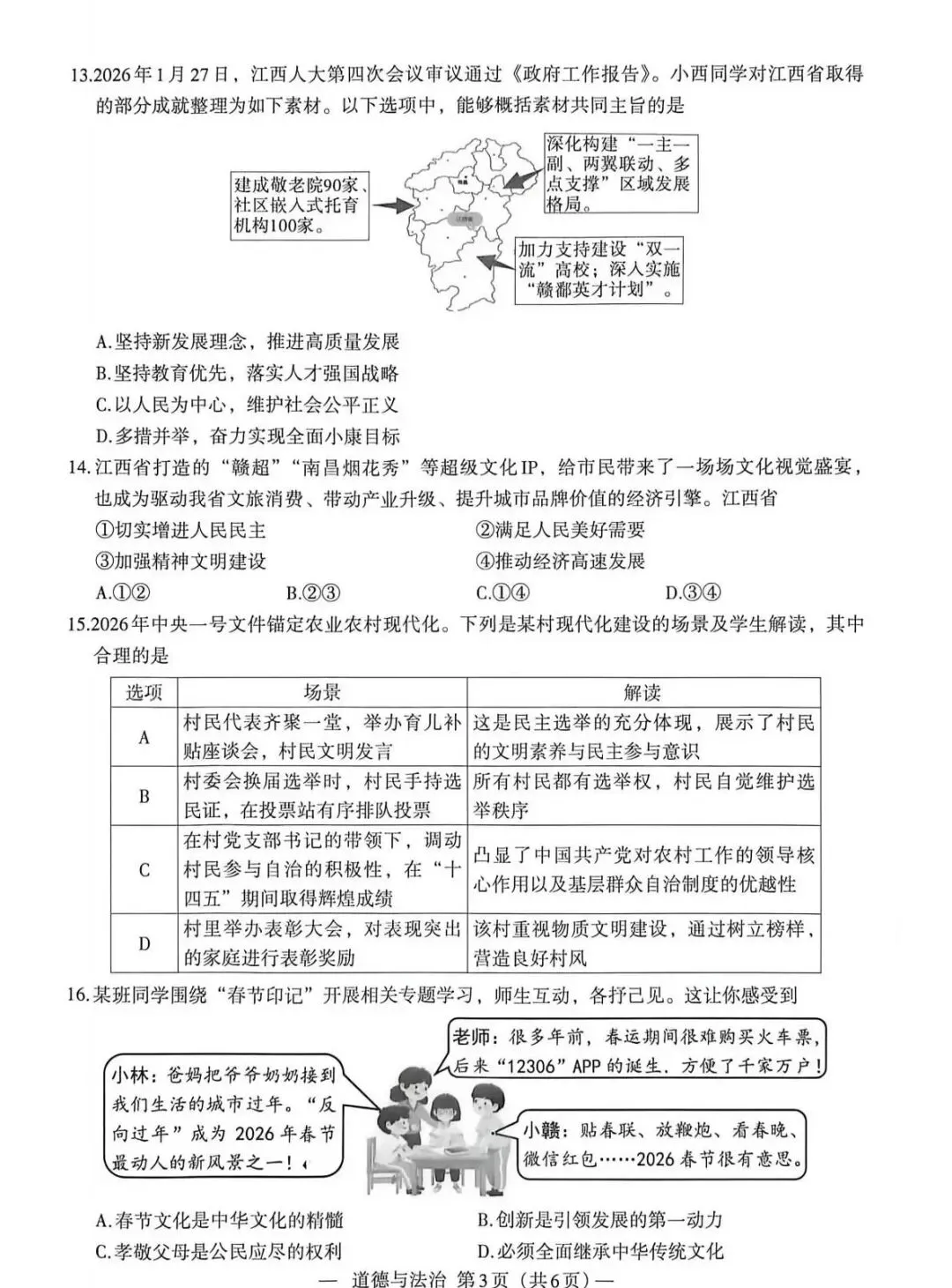 2025至2026年南昌市第一次中考模拟测试卷及答案