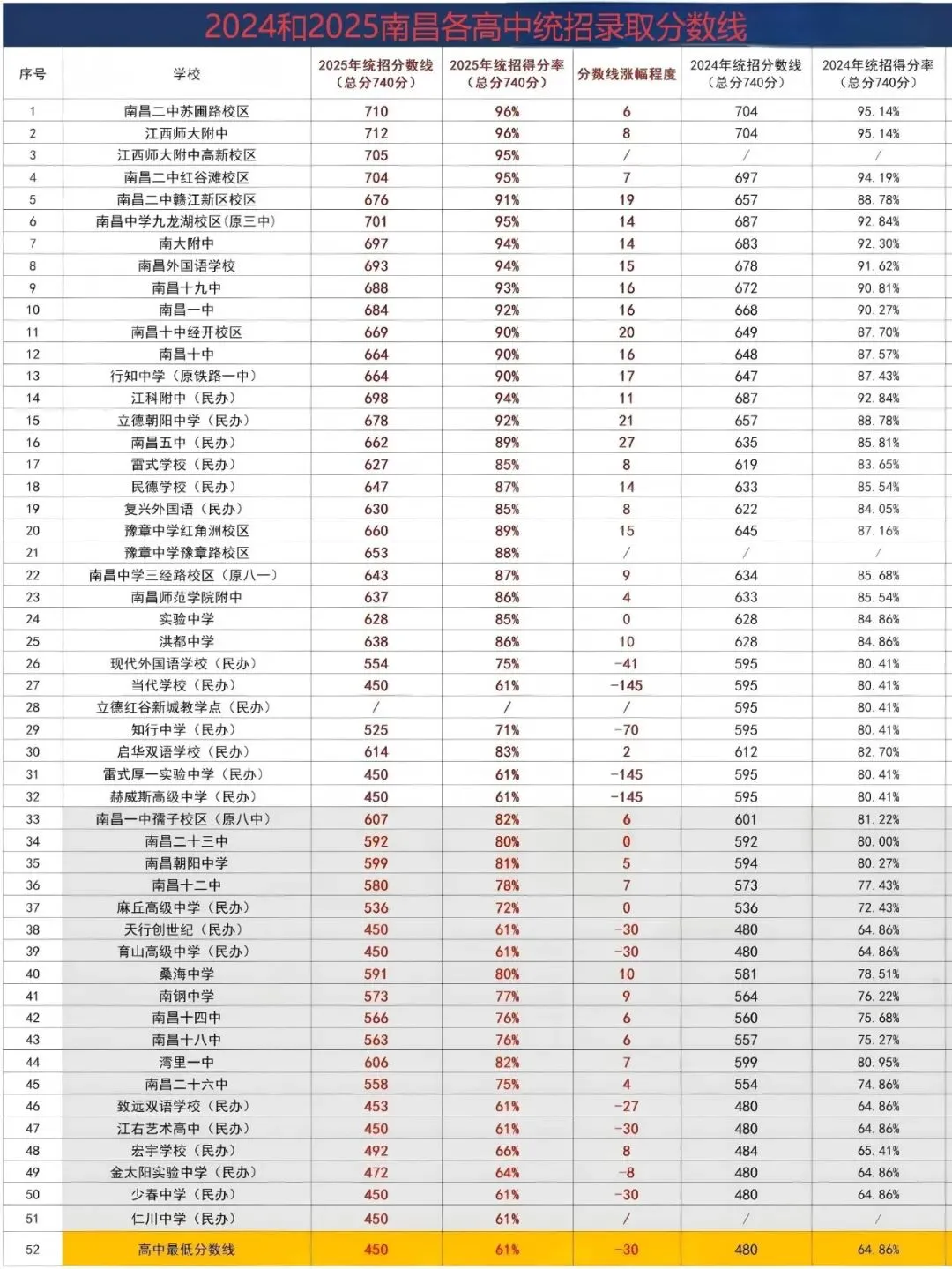 >南昌2026初三一模分数线(预估)附2024和2025各高中统招录取分数对比