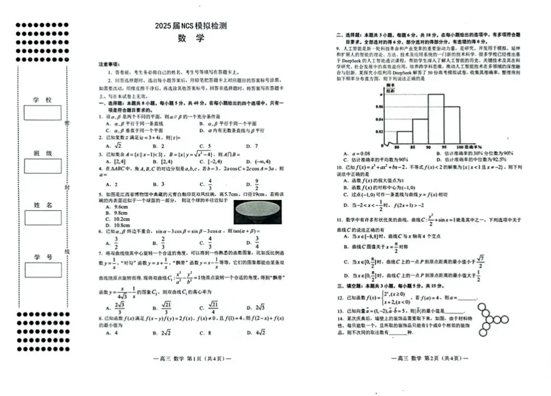 【高三二模】26年南昌高三二模4月23日开考,往年二模试卷+答案免费领取