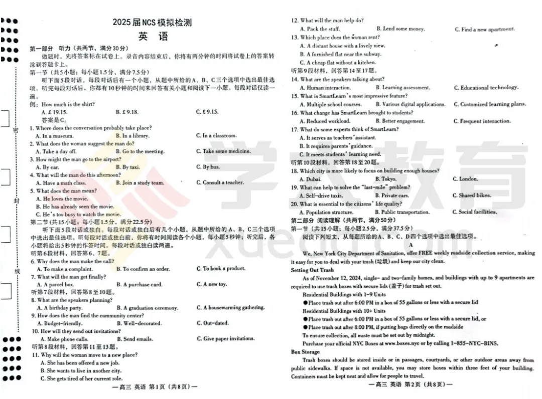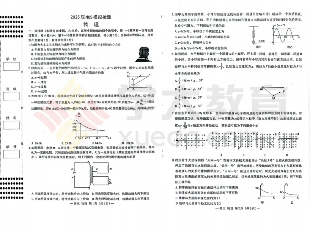 >【高三二模】26年南昌高三二模4月23日开考,往年二模试卷+答案免费领取