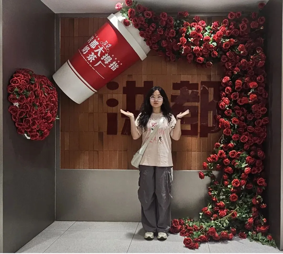 洪都大拇指奶茶喝了,我觉得还挺好喝的,没那么甜,店内装修也蛮特别的,来一张游客照,哈哈~