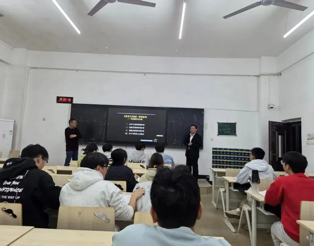 为助力学子圆梦升学,电子教研室于2025年10月专项组建考研辅导团队。团队汇聚教学骨干力量,由何勇福、梅光、周明、肖厚宽、张玲淋、聂小倩六位经验丰富的教师,及魏庆国、吴建华两位特聘教授共同组成,为考研学子保驾护航。备考期间,辅导团队全程护航,精心组织4场专题辅导讲座,在线上答疑微信群累计解答学子疑问100余次,全方位破解备考难题。