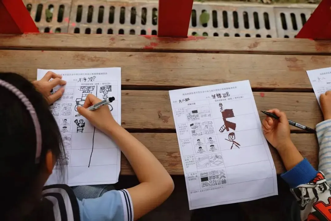 孩子们用符号表征的方式完成了调查表,有的孩子画出了教室的样子,有的画出了操场的跑道,有的用表情符号表示自己的心情😊😃🤔