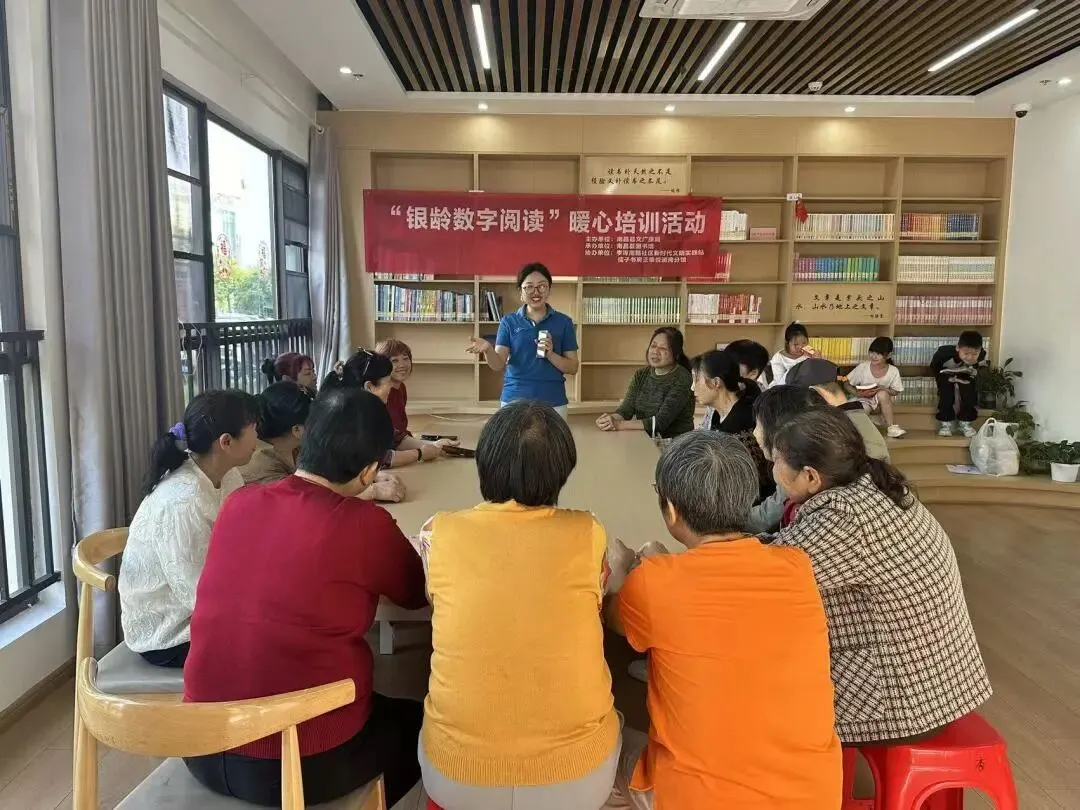 春和景明,书香致远。4月18日上午,孺子书房正荣悦澜湾分馆内热闹非凡,处处洋溢着温馨与求知的氛围。南昌县图书馆精心打造的 “银龄数字阅读” 暖心培训活动在此圆满举办,来自周边社区的数十位老年读者齐聚一堂,在指导老师与志愿者的贴心陪伴下,开启了一场轻松有趣的 “数字阅读之旅”,成功跨越 “数字鸿沟”,解锁智慧生活新技能。