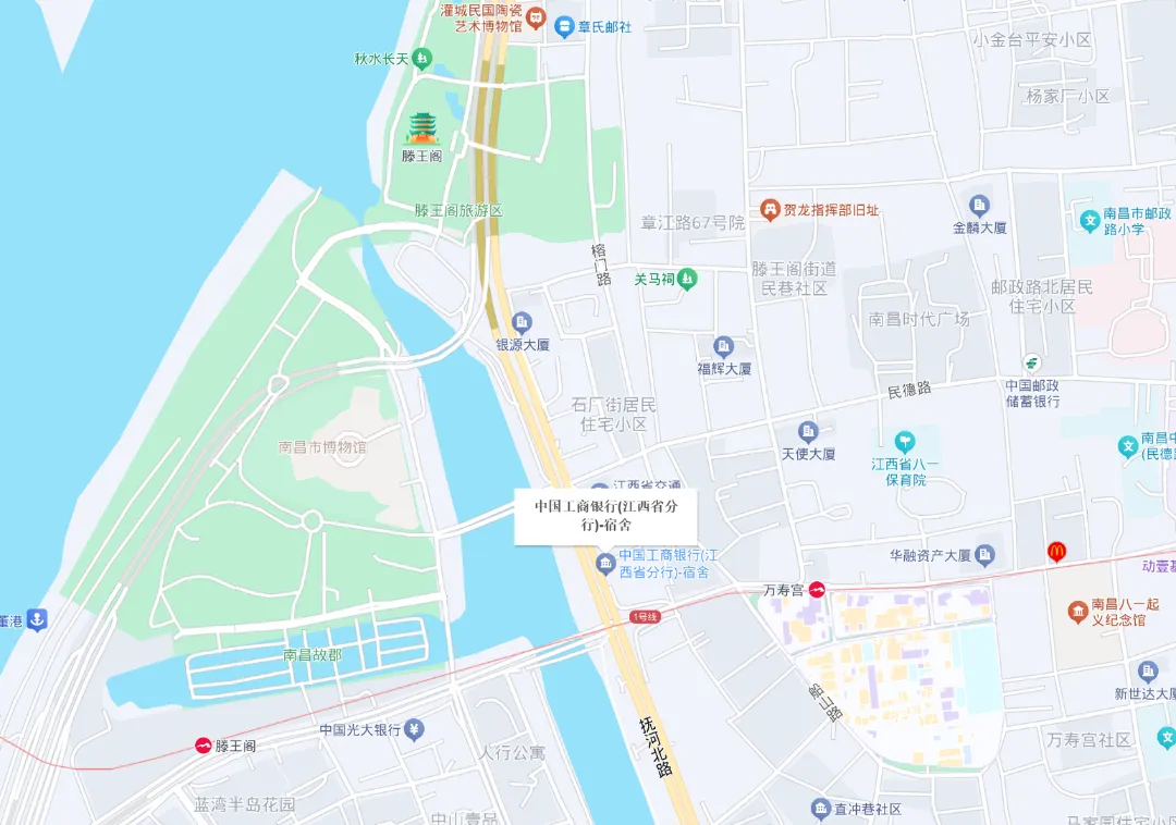 该大楼地处繁华的市中心,毗邻江南三大名楼滕王阁,可前往南昌网红打卡地——万寿宫,热门地区包括中山路、商业步行街、八一起义纪念馆等步行即可到达,距红谷滩秋水广场、万达广场,大约3公里,仅10分钟车程。该资产用于办公商旅皆可。其占地面积为5,192.2平方米,用途为金融用地,土地证办理时间为2005年,其使用年限为40年。