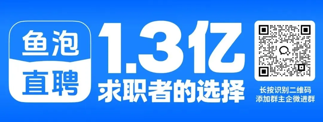 文中岗位均来自小程序👉鱼泡直聘 | 求职招聘找工作👈,如您有其他岗位意向,可点击上方红字查看更多岗位详情~