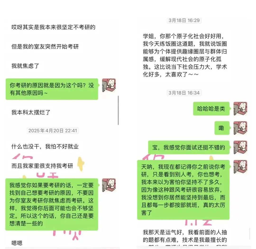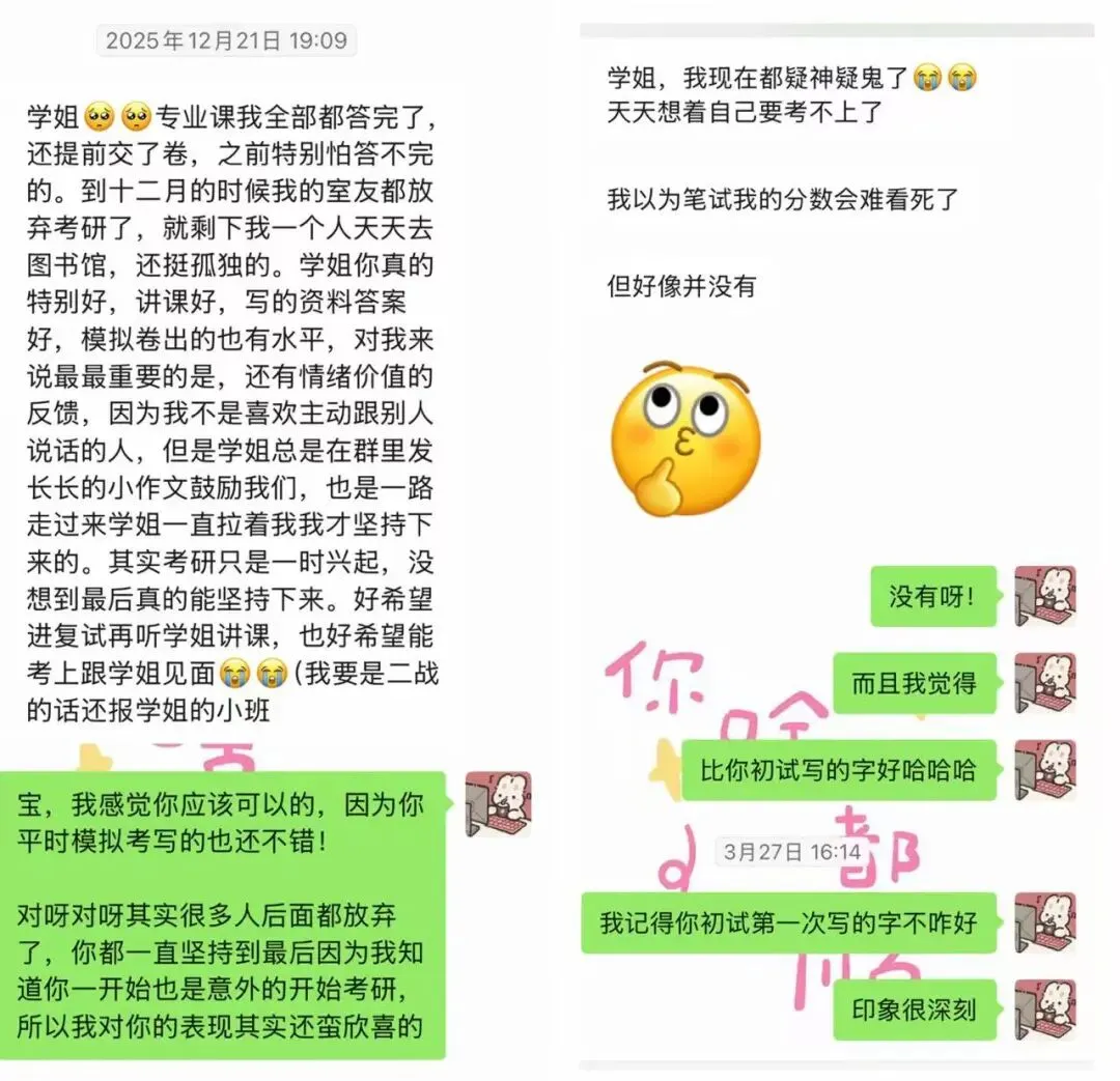 最后初试考完她也给到我们很不错的反馈,我知道她肯定不会二战的哈哈哈,但是没想过会考到这么好嘿嘿(第二张图是复试期间的)