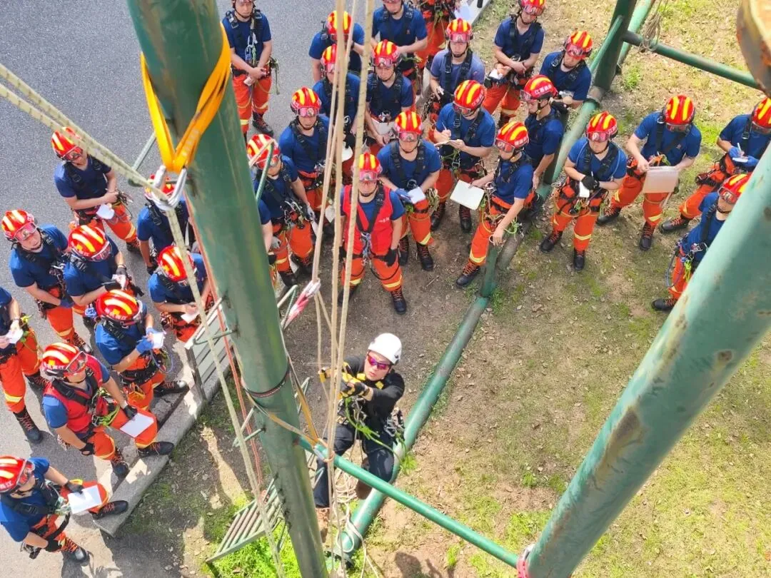 培训期间,授课教练员立足救援实战痛点,系统讲解绳索救援安全规范、装备操作原理及训练伤防护技巧。结合实战案例研究,拆解救援难点、剖析处置要点,帮助参训队员筑牢理论根基。现场教学环节,教练员以身作则、示范引路,重点讲解单兵救援技巧、双绳系统搭建、锚点稳固性测试等核心科目,针对性强化被困人员转移、高空应急速降等实战技能。参训队员态度严谨、刻苦钻研,反复实操打磨细节,力求每个环节精准高效。