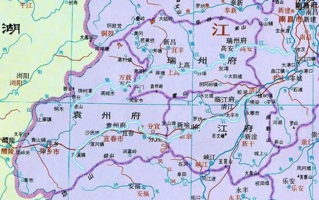 从历史地缘角度来看,浙赣铁路南萍段的铁路选线,实际上就是以瑞州府为代表的锦江流域和以袁州府为代表的袁河流域这两条赣湘通道之间的博弈。