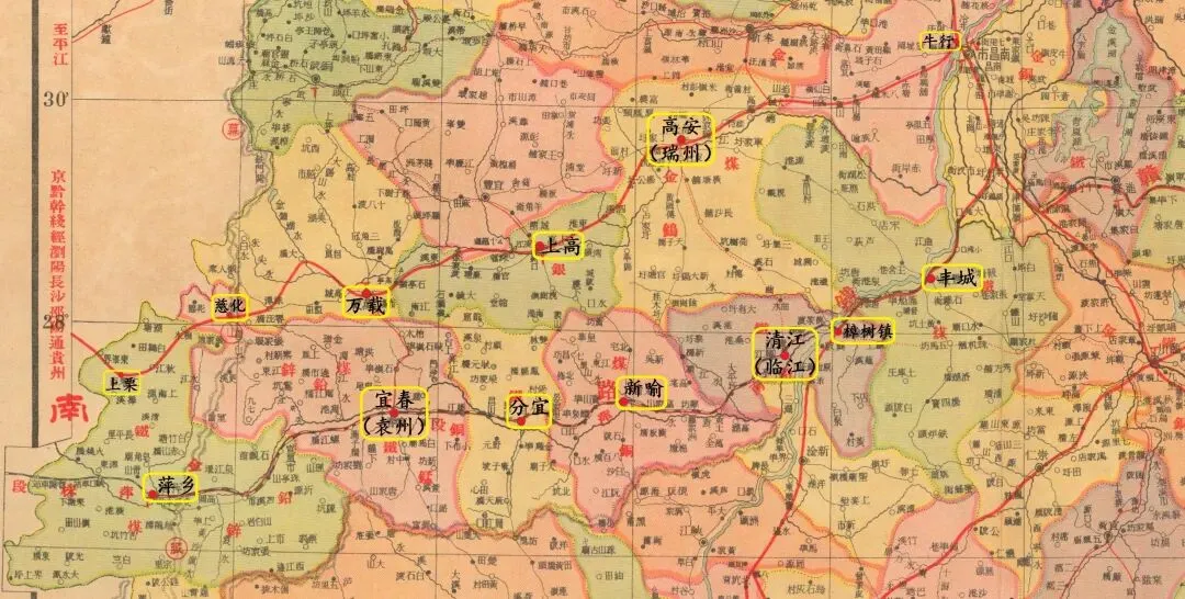 浙赣铁路南萍段南北线争议(1935年江西省图)
