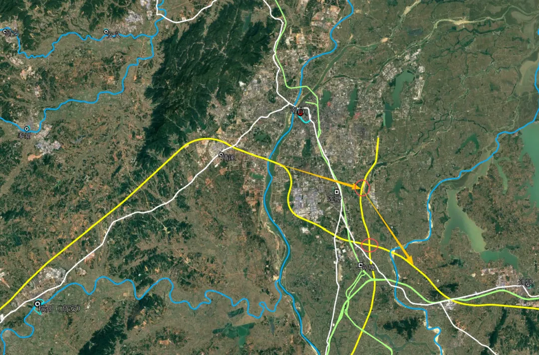 沪昆高铁在跨越赣江后先向南再向东的线型,决定了即使其与京港高铁有修建联络线的条件,这个交汇站不说离南昌主城远之又远,就连距离南昌县也会是十万八千里。从南昌的城市发展来说,这是完全不可行的。