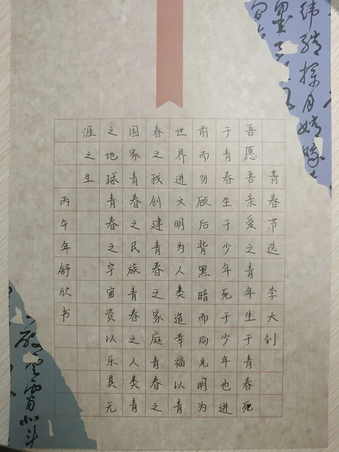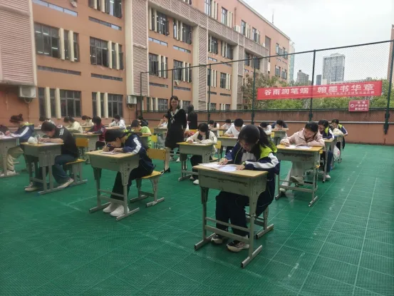 为弘扬中华优秀传统文化,落实立德树人根本任务,营造“墨香校园、书香班级”的浓厚氛围,4月20日下午,南昌市迎宾中学“谷雨润笔端,翰墨书华章”硬笔书写比赛在教学楼二楼平台成功举办。本次活动由学校党支部、团支部主办,语文教研组承办,全校各年级学生踊跃参与。经过前期各班初选,最终40位同学进入现场决赛。