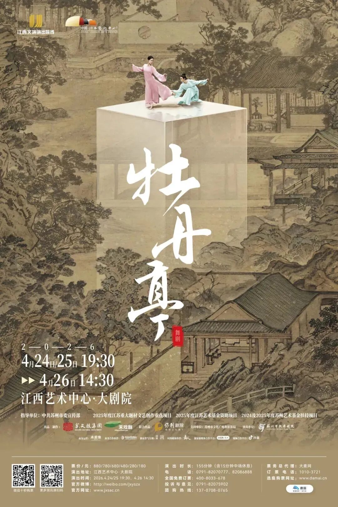 当剧场灯光渐熄、大幕轻启,舞台之上未现太湖石、假山与亭台楼榭的实景园林,只以象征苏式意境的粉墙金砖,勾勒出极简而空灵的意象天地。舞者衣袂翩跹,轻舞其间,一步一景,一姿一韵,缓缓走入那场跨越生死的千古传奇。