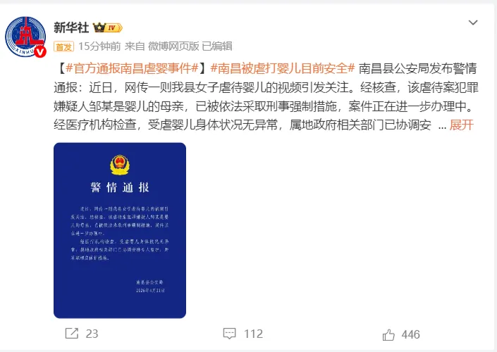 4月21日晚,江西南昌县公安局发布警情通报: