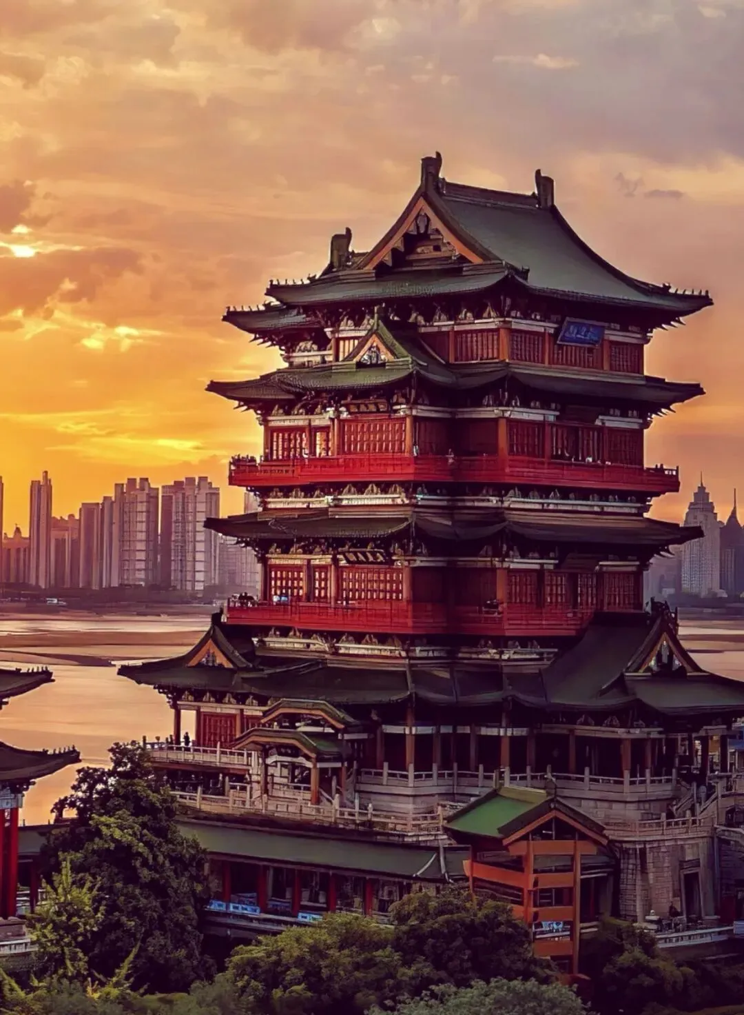 日落时分的极致江景