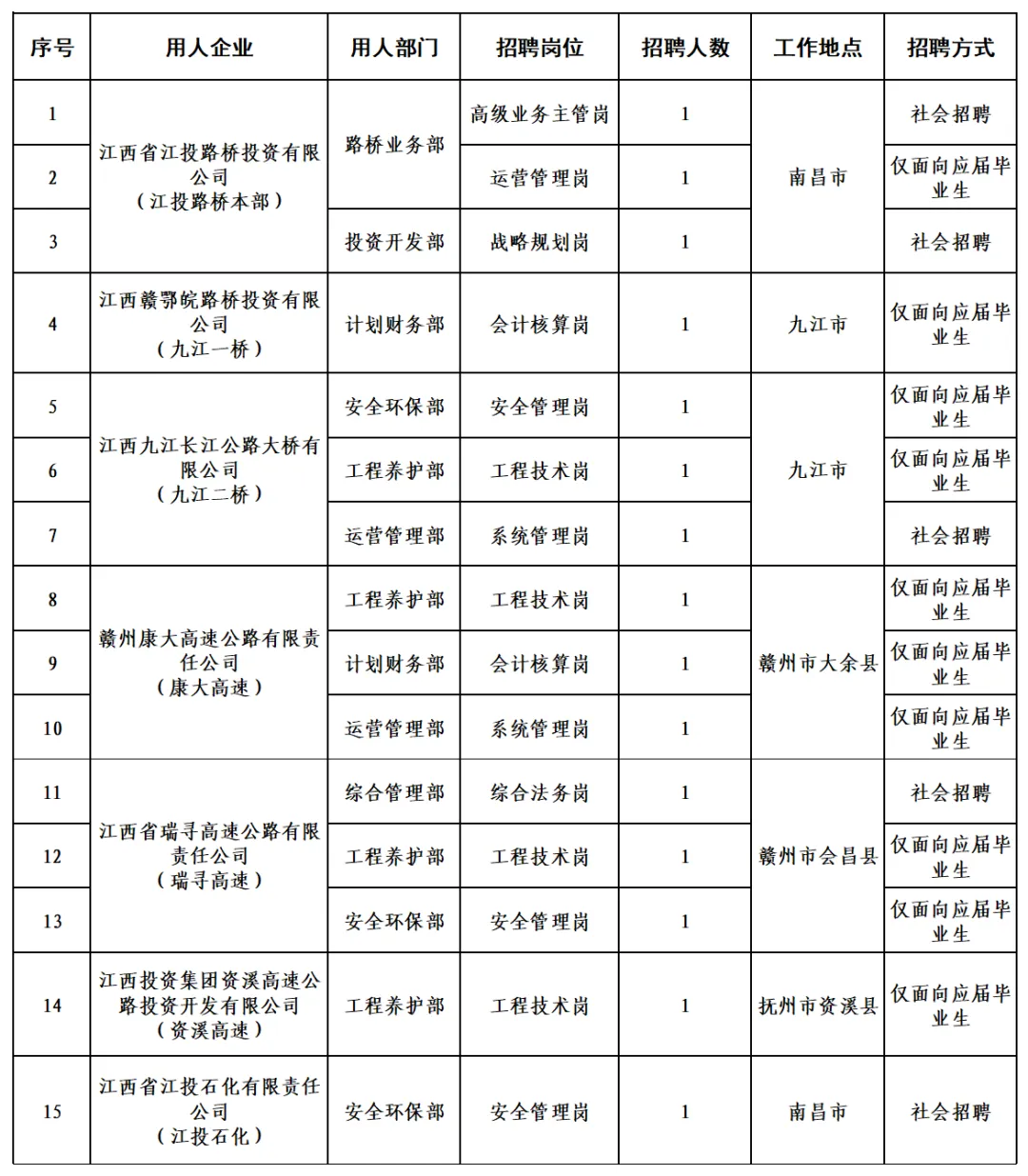 4.各岗位具体条件详见附件1《江西省江投路桥投资有限公司2026年公开招聘岗位信息汇总表》。