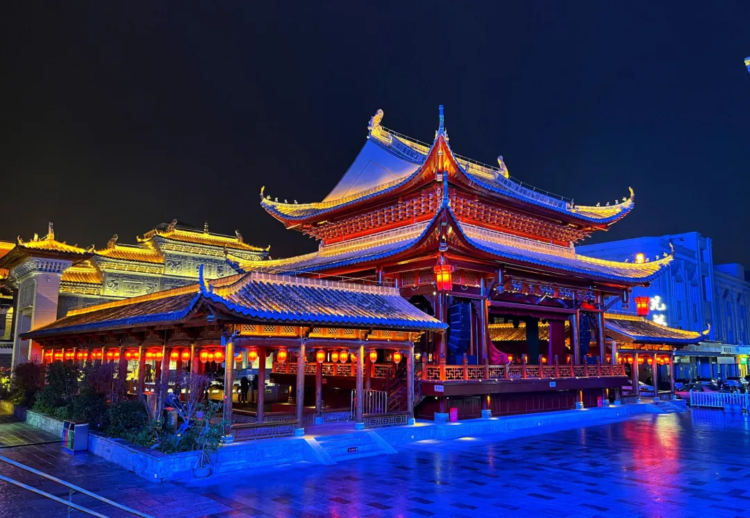 晚上七点之后这片才真正热闹起来,广场上有跳舞的、有遛狗的、有坐着聊天的,商铺都开着灯,整个氛围就起来了,我看到有年轻人在酒吧门口排队,也有中年人在茶馆里下棋,还有小孩在喷泉旁边跑来跑去,这种混龄的公共空间其实现在不多见了。